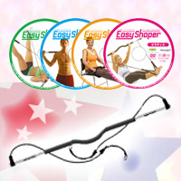 イージーシェイパーには、エクササイズをサポートする専用DVDがついています。スティックの使い方や基本動作を収録した「トータルボディ」、腹筋専用プログラム「エクスプレスアブス」、椅子に座って行なう「チェアーフィット」、そして人気の「ピラティス」の4本。もちろんすべて日本語吹替版です。